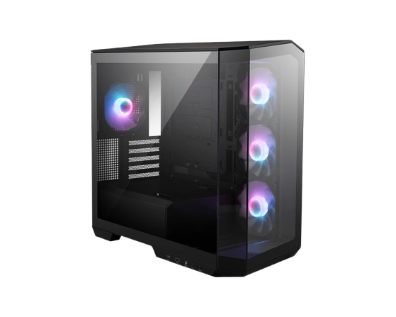 The MAG PANO M100R PZ is a panoramic micro-ATX gaming case designed to showcase your build with a wide, uninterrupted glass view while maintaining strong airflow and ARGB lighting performance. Its seamless tempered glass design across the front and side panels allows a complete visual display of your GPU, fans, coolers and lighting setup, making it ideal for aesthetic-oriented builds.
